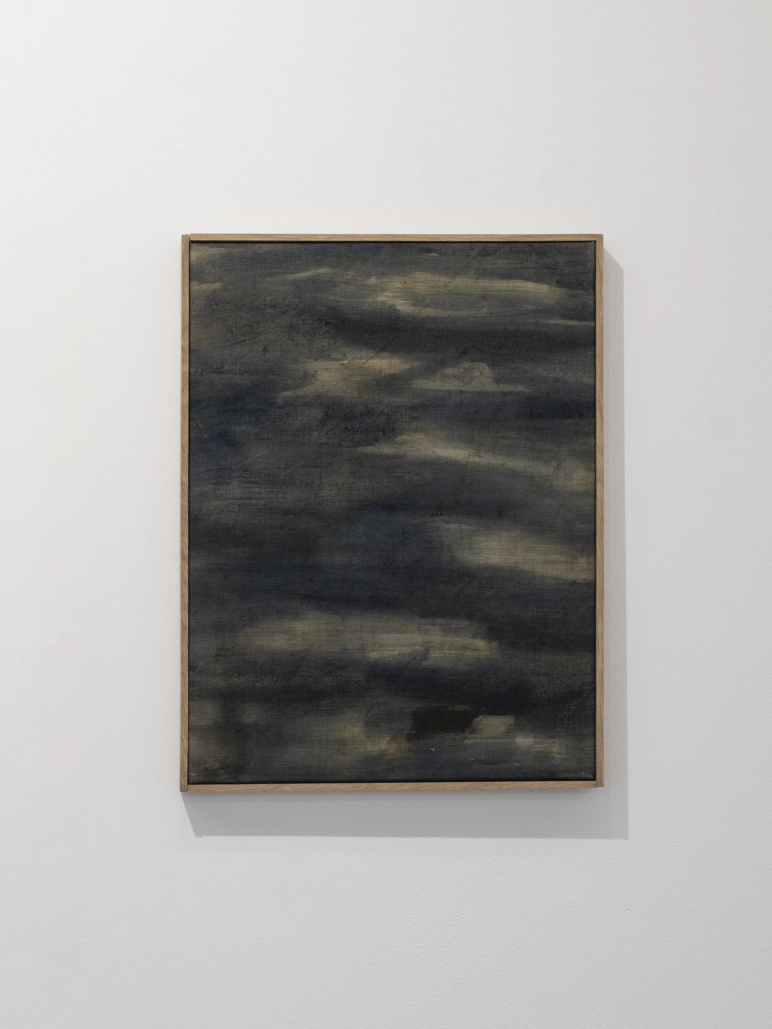 Material: Linen, indigo and earth pigments. Artist frame in oak.