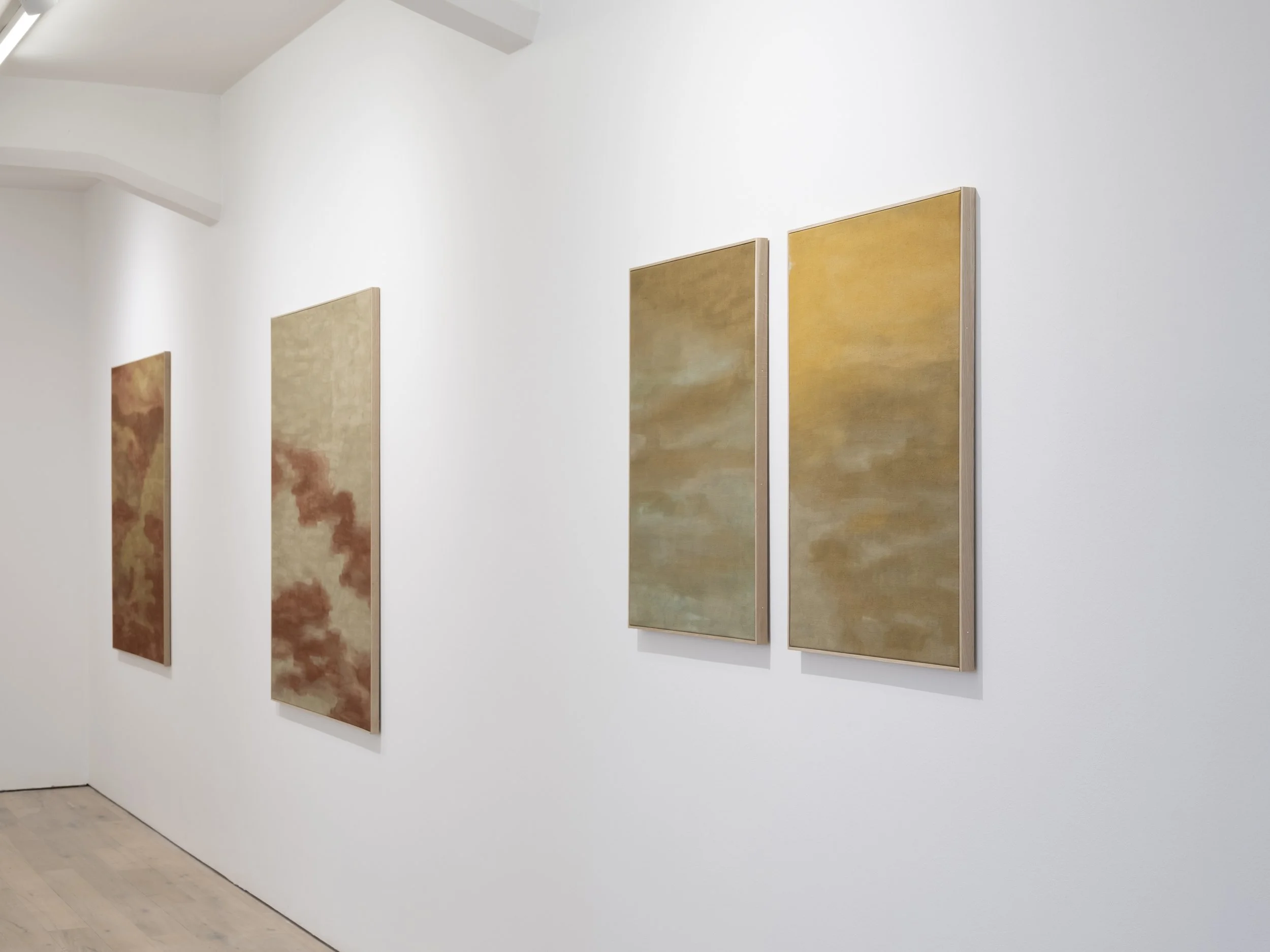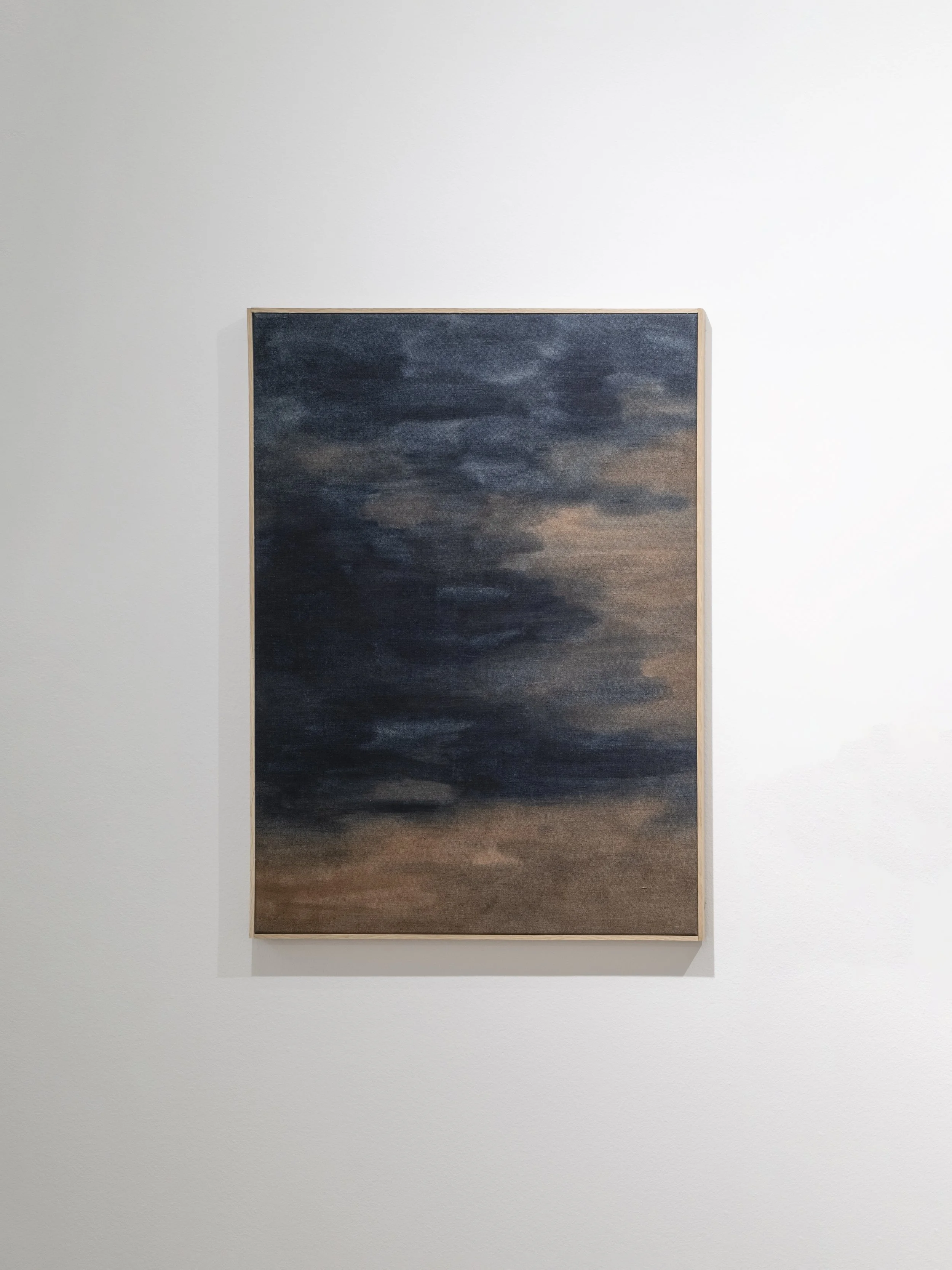 The works are created through a layered process using natural dyes from Iceland and Japan combined with various earth pigments. Each colour is mixed by hand and built slowly through multiple layers. While the palette is carefully developed through years of research into natural dyeing, the act of painting itself remains intuitive. Using traditional Japanese brushes associated with Katazome dyeing, the marks emerge through a balance of control and intuition, allowing the material and surface to guide the movement of the brush.